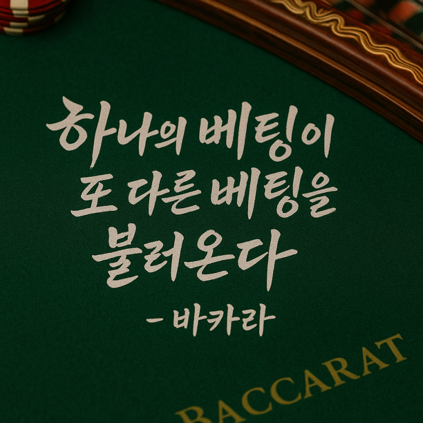 승부의 몰입과 집중을 강조하는 메시지로, 매 순간을 마지막처럼 진지하게 임해야 한다는 철학이 담겨 있습니다. 캘리그래피는 굵고 강렬한 붓글씨 스타일이 어울리며, 배경은 붉은 조명이 은은하게 비치는 테이블 위 이미지가 적합합니다. 인스타그램 피드에서는 어두운 배경에 강렬한 붓펜 글씨가 돋보이도록 연출하면 시선을 사로잡을 수 있습니다. 이 문구 역시 인스타용 감성 바카라 명언 캘리그래피 예시 중에서 몰입감을 가장 잘 표현하는 예시입니다.